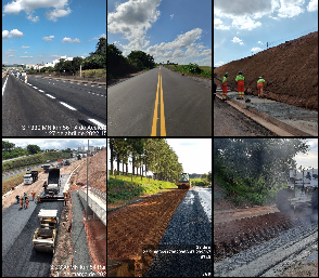 Visão área da execução de pavimentação na Rod. Vicente Palma SP-129 em Boituva.